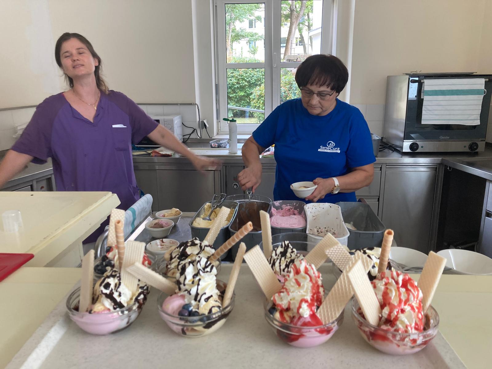 Wenn die Temperaturen steigen, ist eine Erfrischung sehr willkommen: Aus diesem Grund feierte die SeneCura Residenz Oberdöbing vor kurzem eine Eisparty. Das Team hatte köstliche Eisbecher für alle vorbereitet, die die Bewohner:innen in vollen Zügen genossen. Die Stimmung war ausgelassen und alle freuten sich über die kleine Feier.