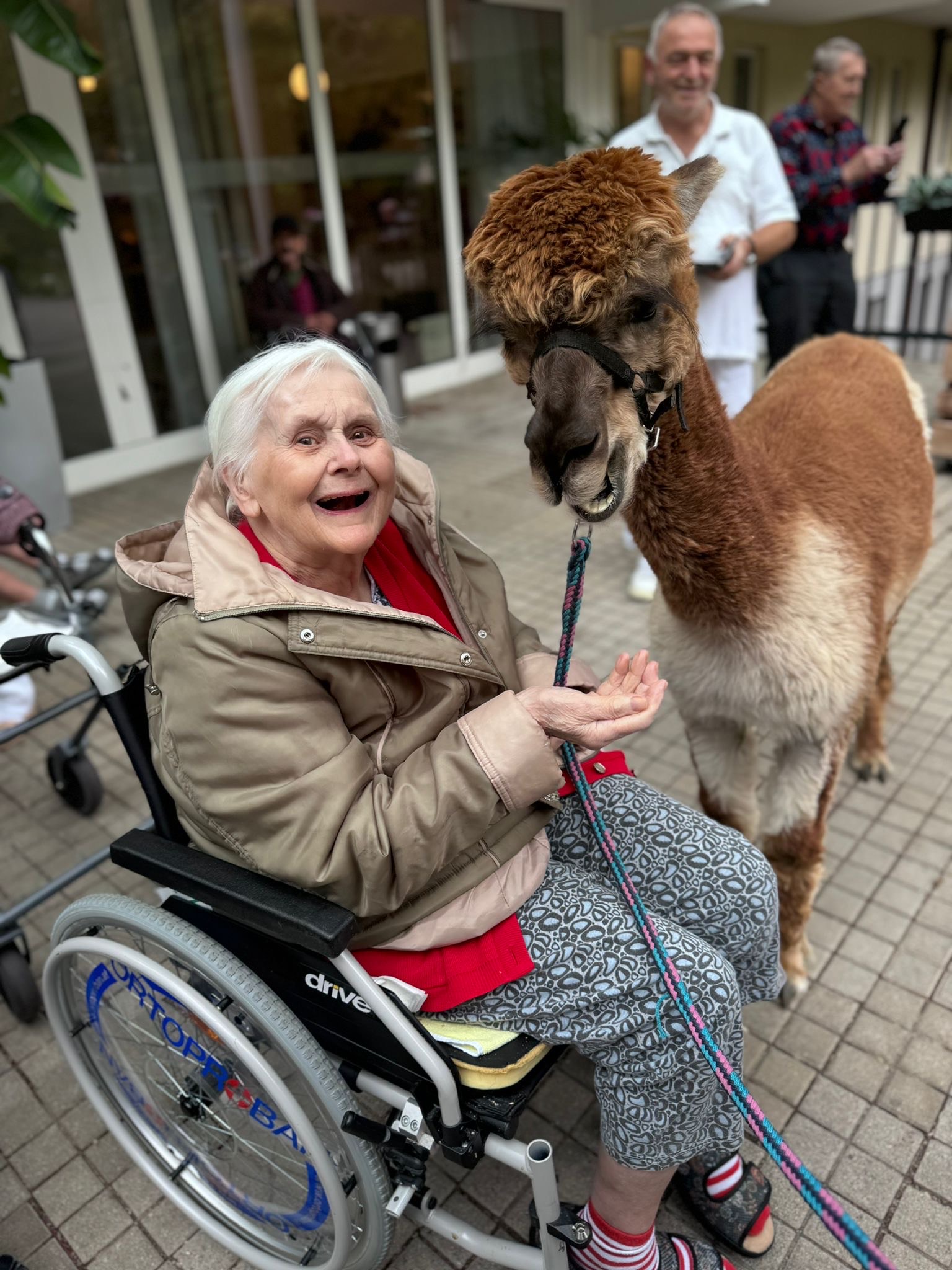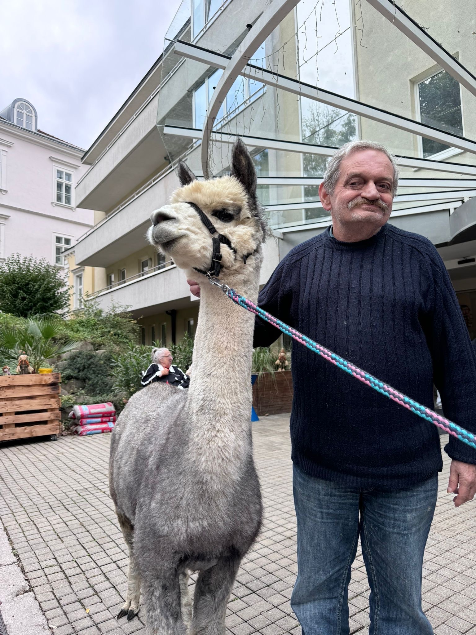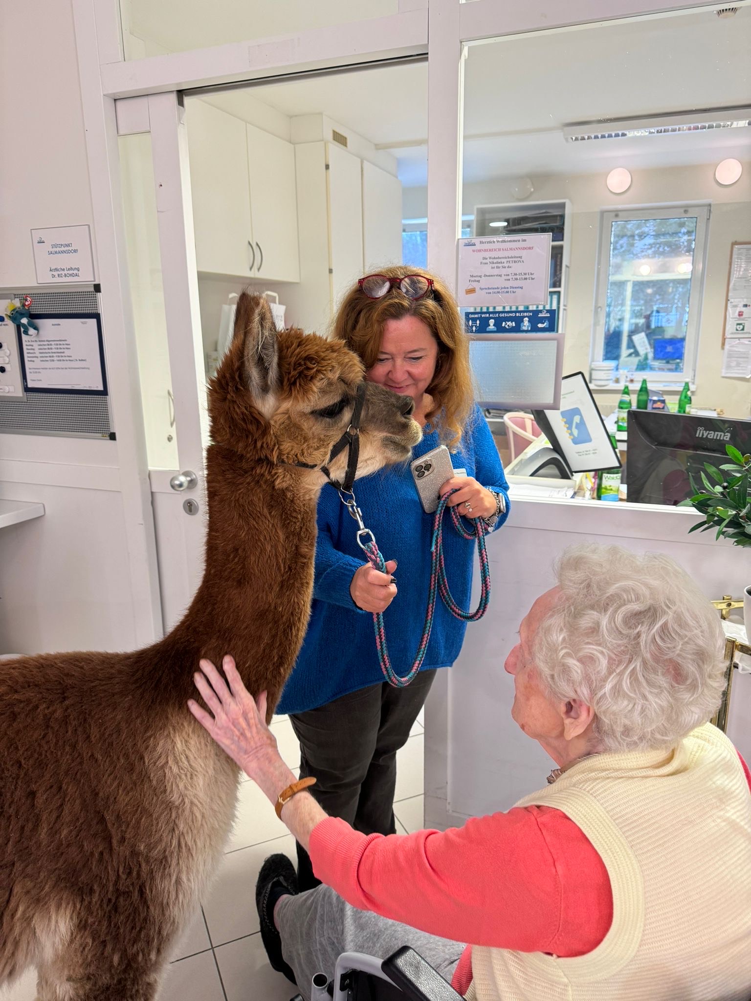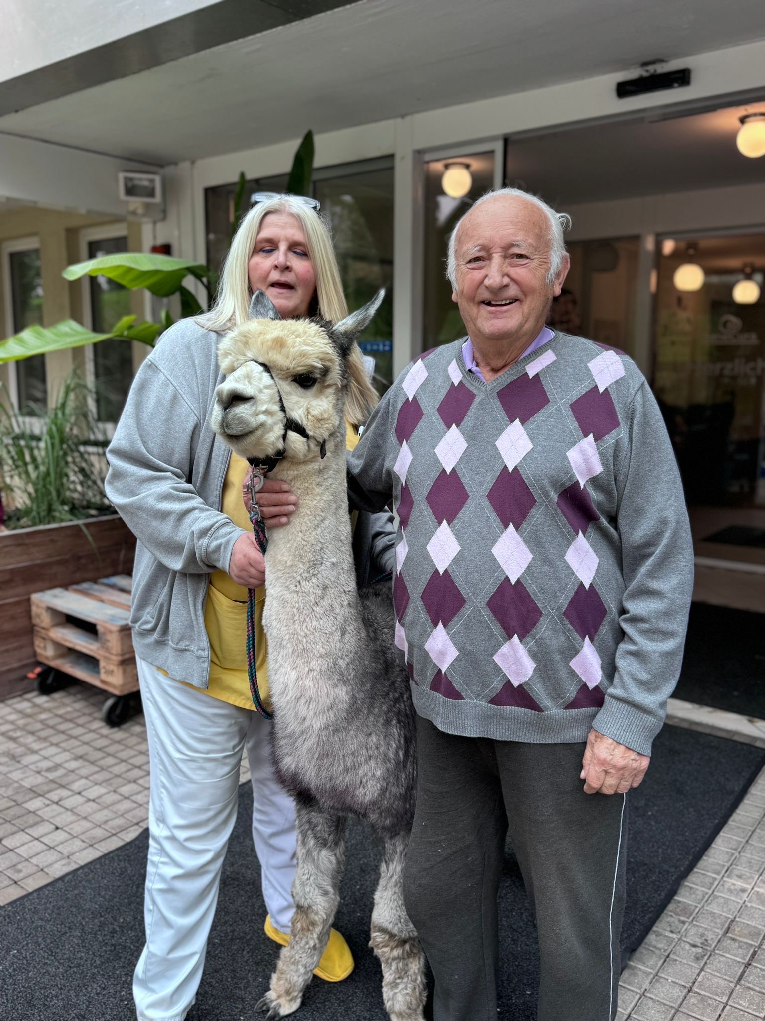 Es gab flauschigen Besuch in der SeneCura Residenz Oberdöbling, denn die drei kuschligen Alpakas Paddy, Salomon und Macuro sind zu Besuch gekommen. Letzte Woche machten sich die Fellnasen auf den Weg in die Residenz und wurden geknuddelt, gefüttert und gestreichelt. Paddy, Salomon und Macuro wirkten mit ihrem Dasein sehr beruhigend auf die Bewohner:innen und eroberten ihre Herzen schnellstens.