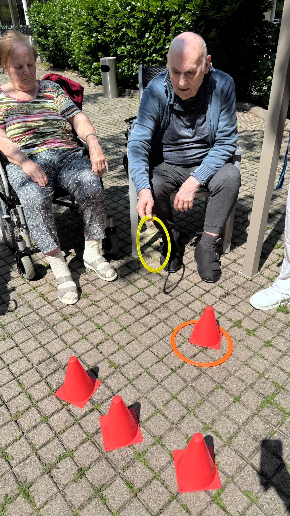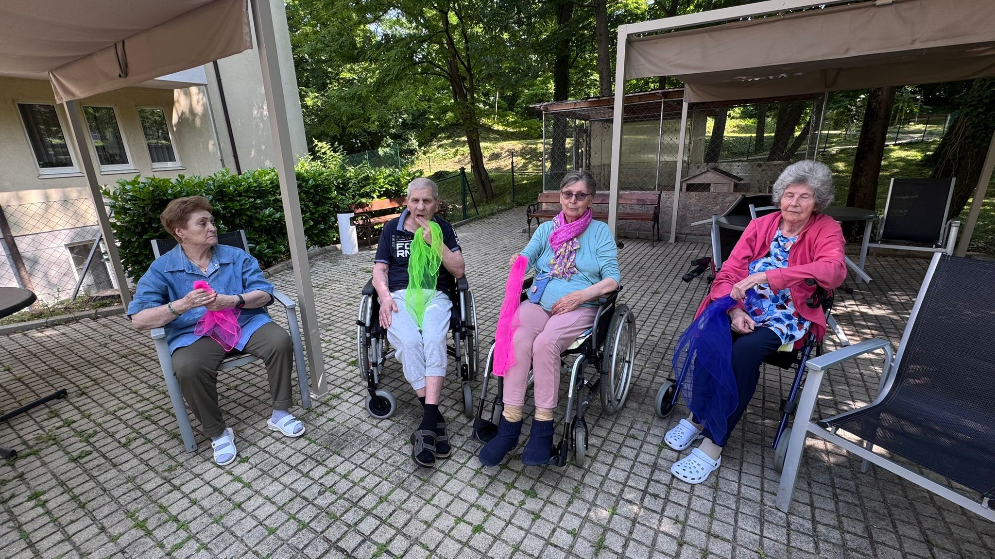 In der SeneCura Residenz Oberdöbling fand kürzlich eine lustige Bewegungsrunde mit den Bewohner:innen im hauseigenen Garten statt. Bei angenehmem Wetter wurde mit viel Geschick Kegel mit Ringen versucht zu treffen, bunte Tücher geschwungen und Würfel in die Übungen eingebaut – für Abwechslung und Spaß war also definitiv gesorgt. So konnte der Tag aktiv und motiviert im Sozialzentrum gestartet werden.