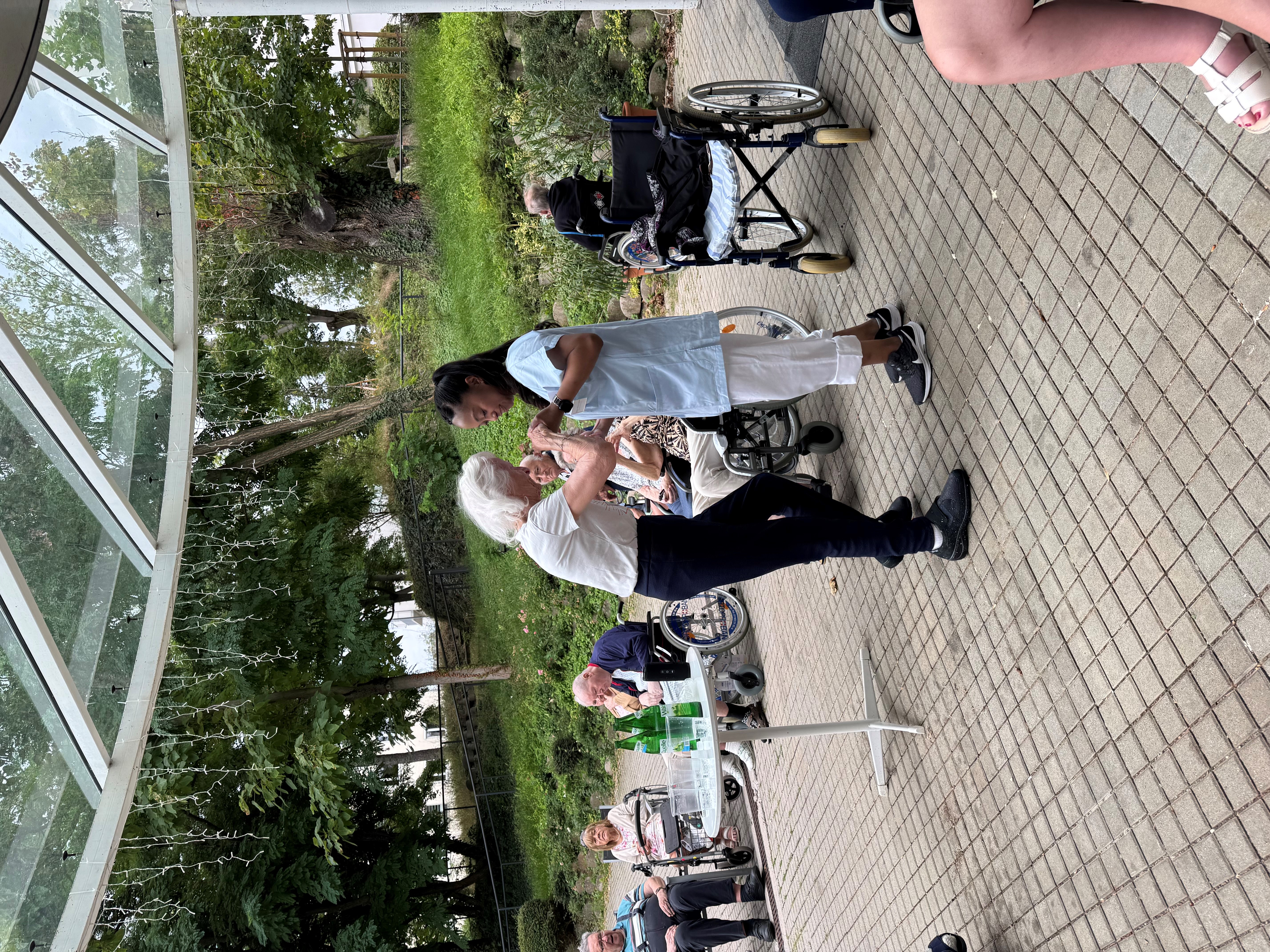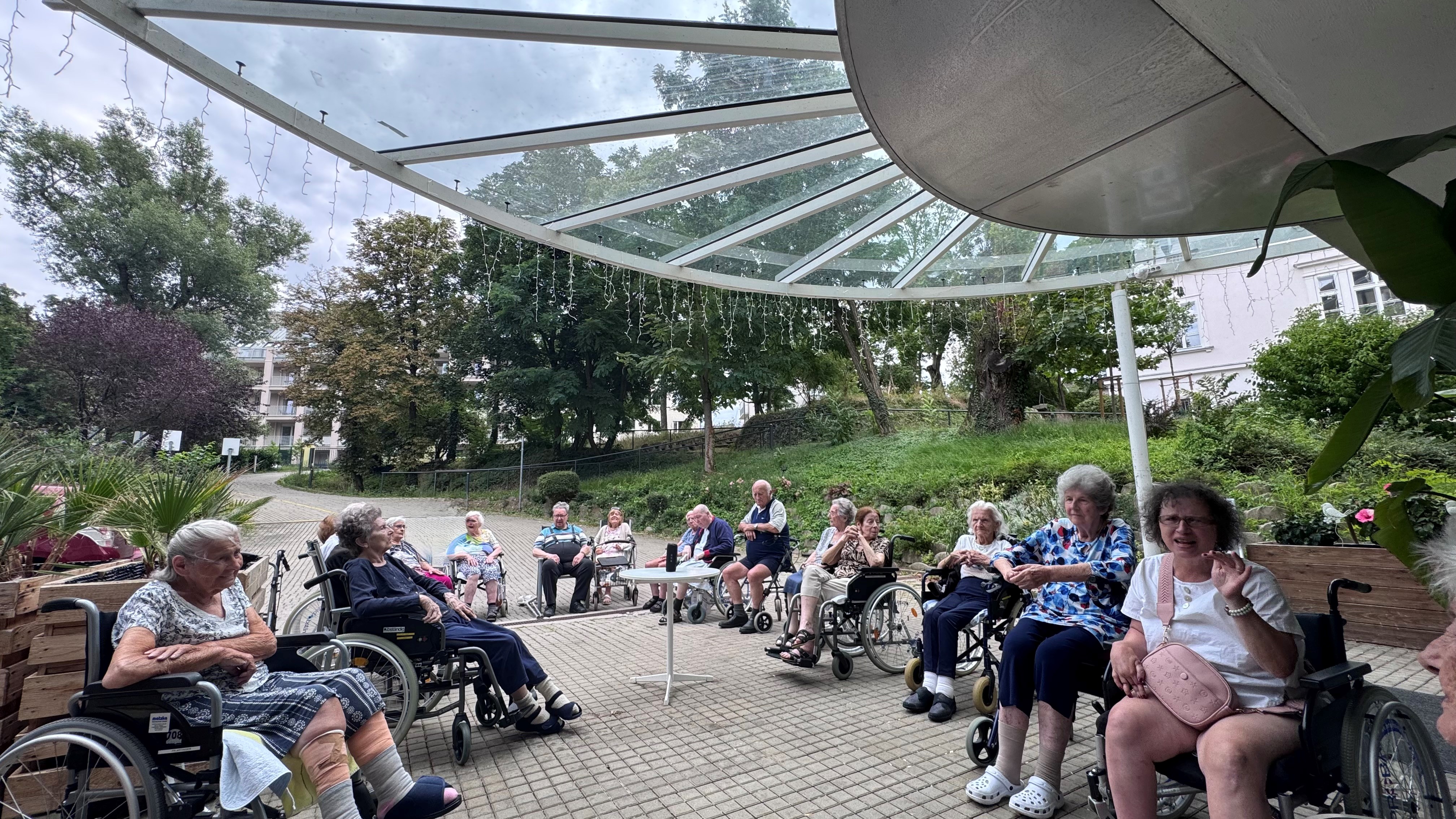 Bei angenehmen Temperaturen fand im Garten der SeneCura Residenz Oberdöbling eine besondere Musikstunde statt. Mithilfe einer Musikbox, die in der Mitte stand, konnten der Reihe nach die Musikwünsche der Bewohner:innen erfüllt werden. Alle genossen die fröhlichen Klänge, sangen mit und tanzten, was das Zeug hält. Es war ein lustiger Nachmittag voller schöner Momente.