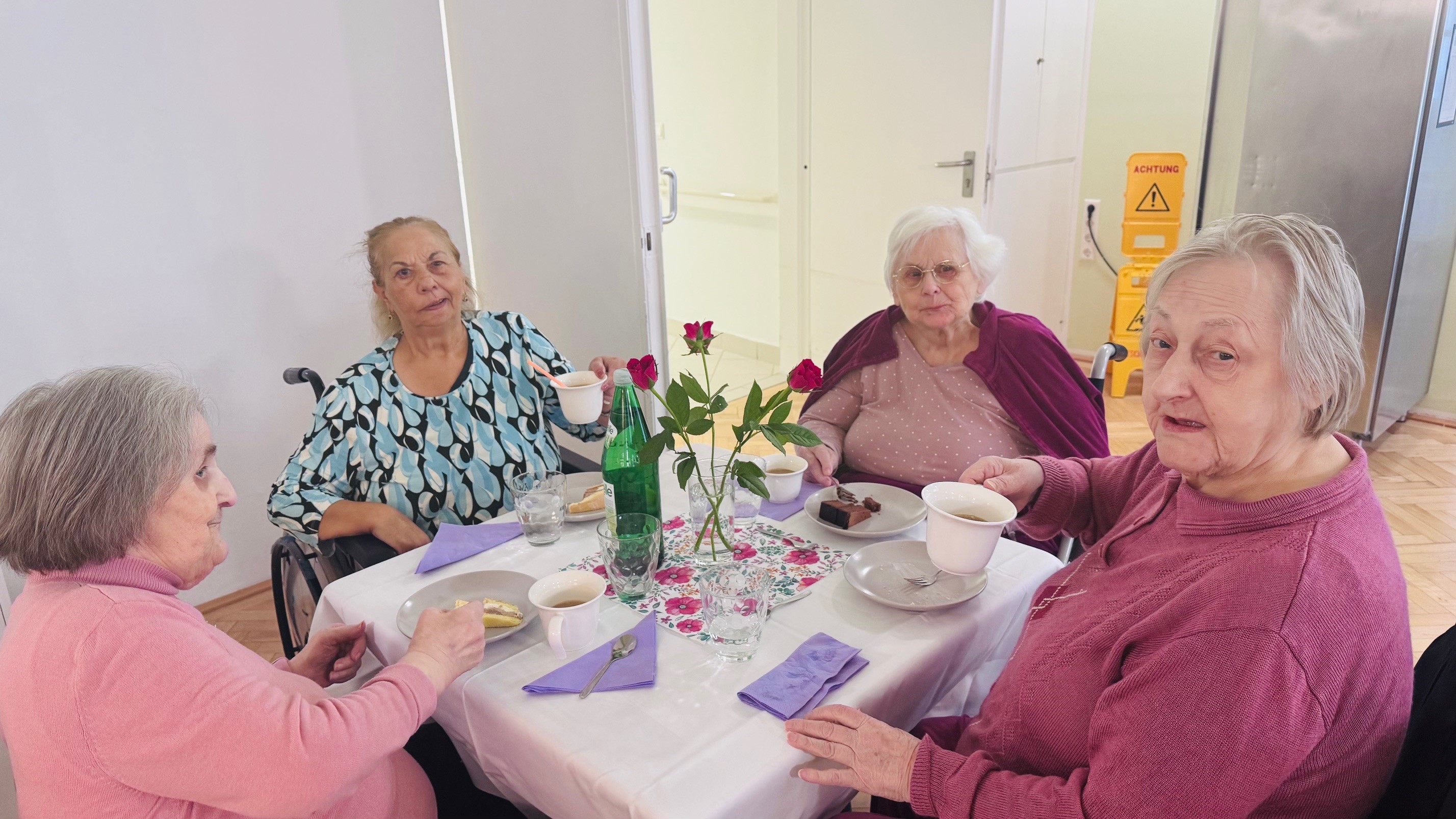 Die Bewohner:innen genossen die gemütliche Jause, köstliche Kuchen, gute Gespräche und die musikalischen Beiträge, die den Nachmittag zu etwas ganz Besonderem machten.