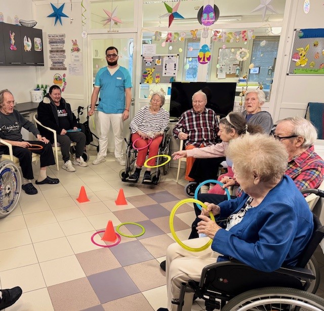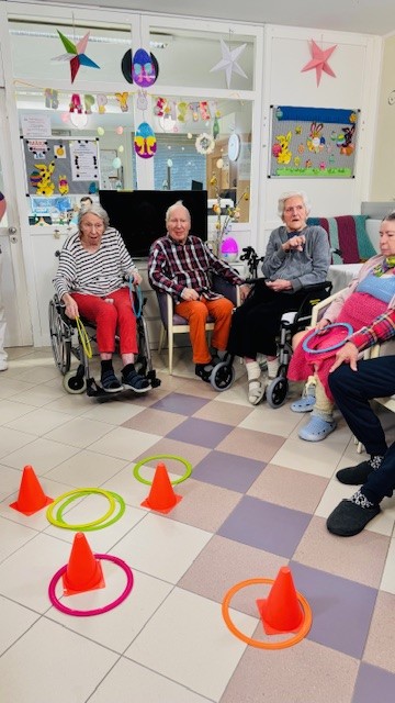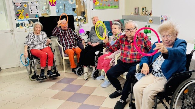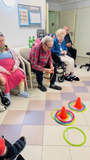 Für Bewegung und gute Laune in der SeneCura Residenz Oberdöbling sorgten kürzlich unsere Wurfspiele mit bunten Aerobie-Ringen. Gemeinsam mit den Mitarbeiter:innen hatten unsere Bewohner:innen großen Spaß daran, die leichten, neonfarbenen Ringe zu werfen und zu fangen.
